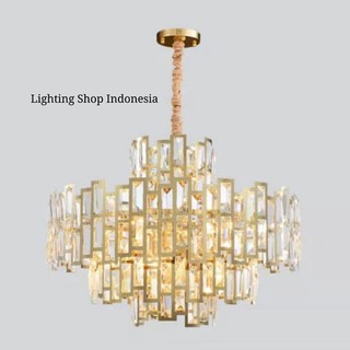 Lampu gantung kristal gold modern lampu meja makan ruang Sumber : shopee.co.id